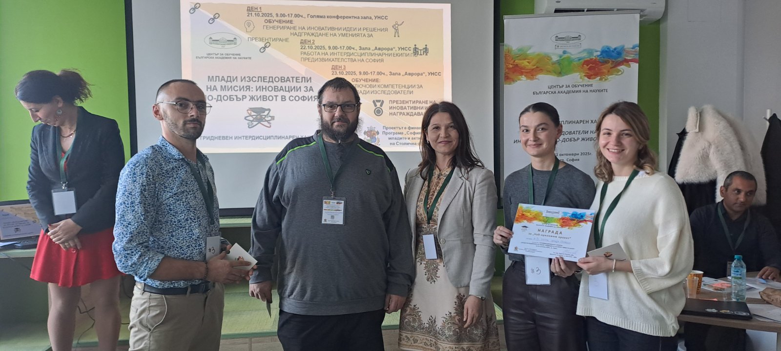 В рамките на проект „Млади изследователи на мисия: иновации за по-добър живот в София“, Център за обучение – БАН реализира тридневен интердисциплинарен хакатон. Докторанти, асистенти, студенти и постдокторанти се включиха в обучителните модули за разработване на научно-базирани решения и реални предизвикателства в столицата. Участниците в хакатона получиха сертификати, а най-добре разработените и обосновано презентирани идеи пред менторите и журито в състав - доц. д-р Силвия Георгиева, Ивайло Иванов (директор на Founder InstituteCentral & Eastern Eurrope), доц. Д-р Владимир Божилов, гл. ас. д-р Валентина Долмова, гл. ас. Д-р Илина Начева, гл. ас. д-р Цветелина Панчалиева и Димитър Узунов (съосновател и ръководител на Арте Урбана Колектив), бяха наградени в категориите „Най-убедително представен проект“, „Най-приложим проект“ и „Най-иновативен проект“.